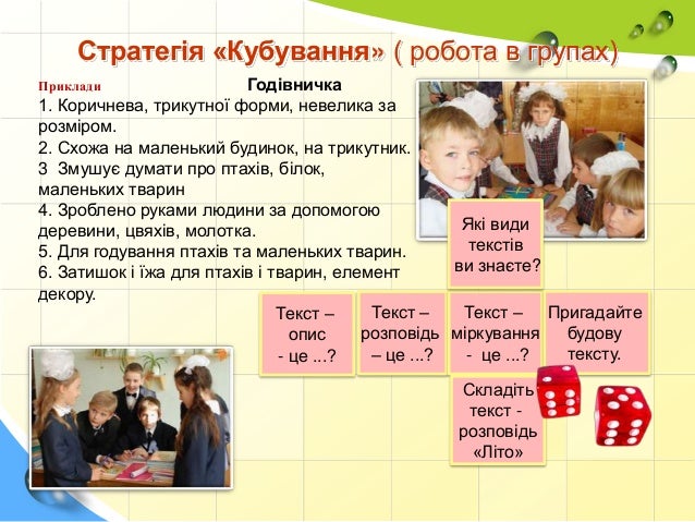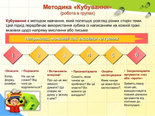 підхід передбачає використання кубика із написанням на кожній грані вказівки