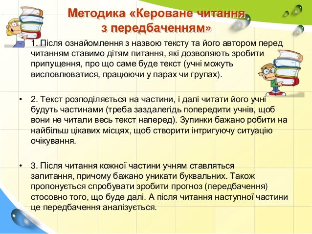 очікування. • 3. Після читання кожної частини учням ставляться запитання,