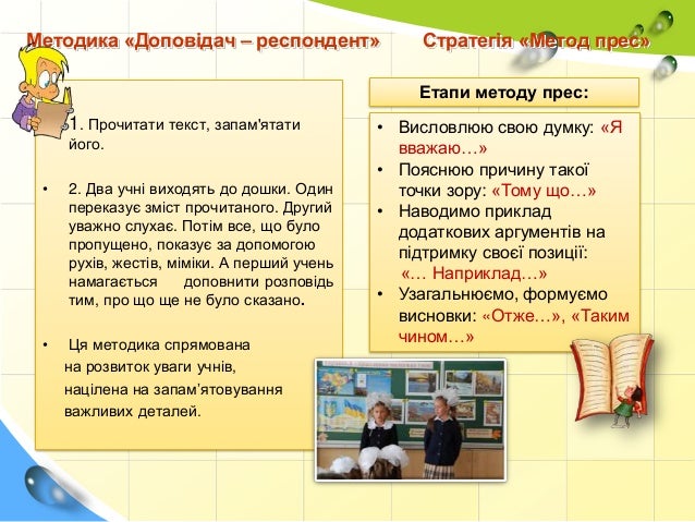 Стратегія «Метод прес» Етапи методу прес: • 1. Прочитати текст, запам'ятати